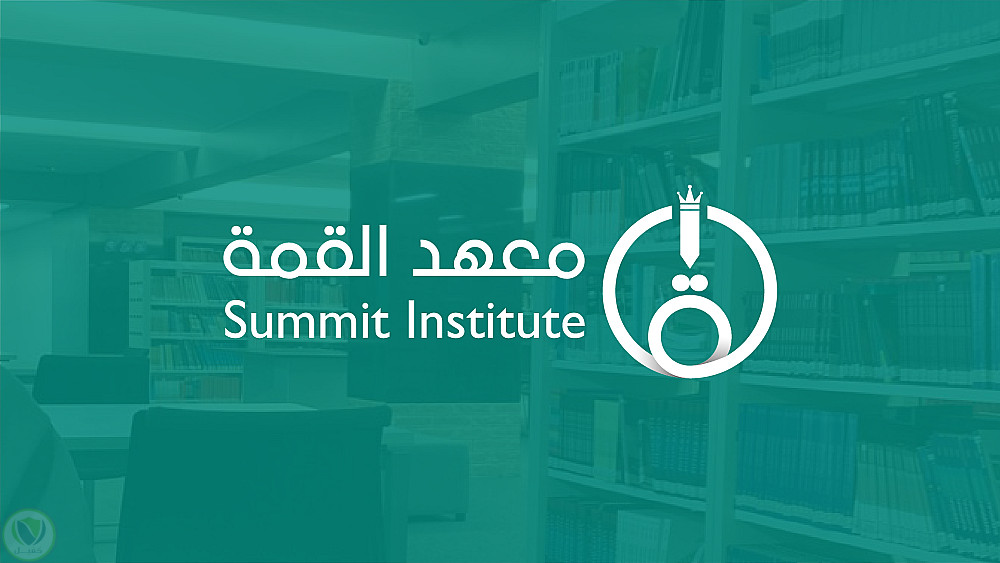 الشعار عبارة عن دمج حرق القاف والقلم والتاج ليكون شعار لمعهد القمة المتخصص في تقديم الدروس التعليمية