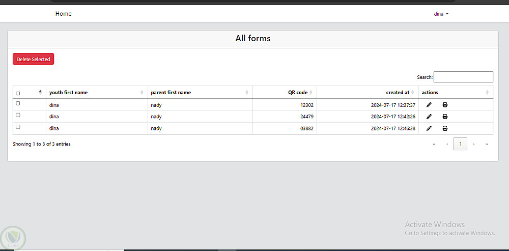 يمكن للأدمن عرض جميع الاستمارات المملوءة.