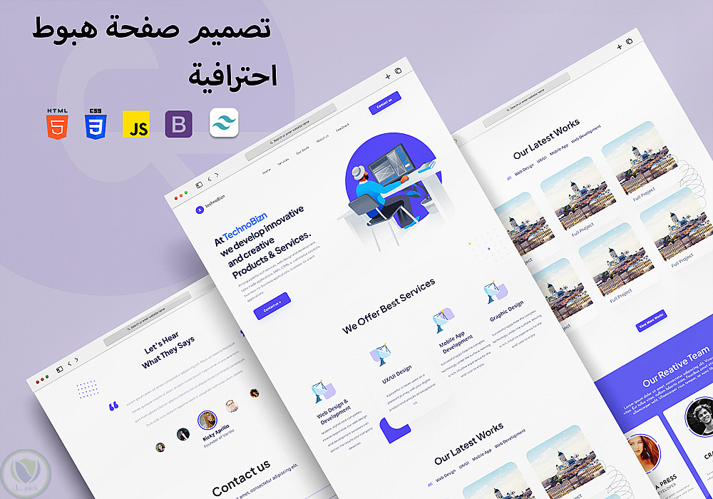 كود نظيف ومنظم باستخدام HTML, CSS, JavaScript, Bootstrap.