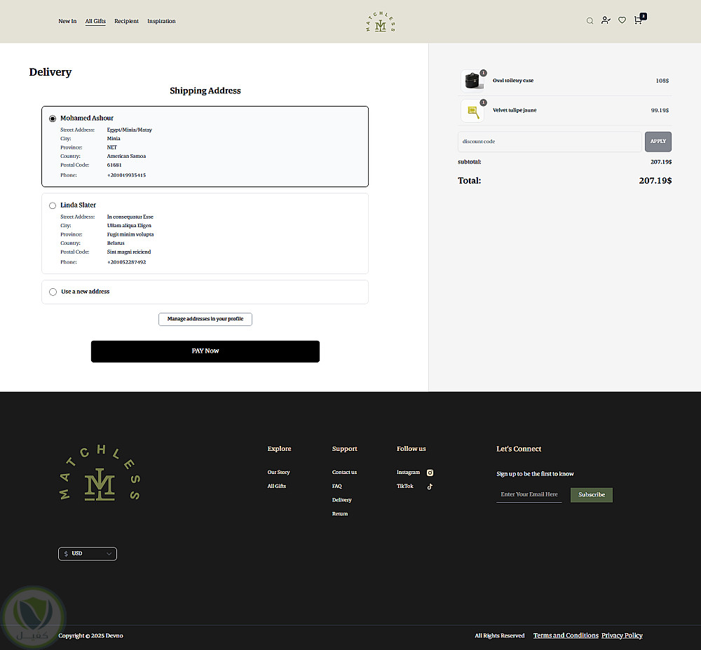 - تجربة التسوق: يمكن للعملاء إضافة المنتجات إلى سلة المشتريات أو قائمة الأمنيات، مع صفحة تفصيلية للمنتج وبوابة دفع Tap Payments.