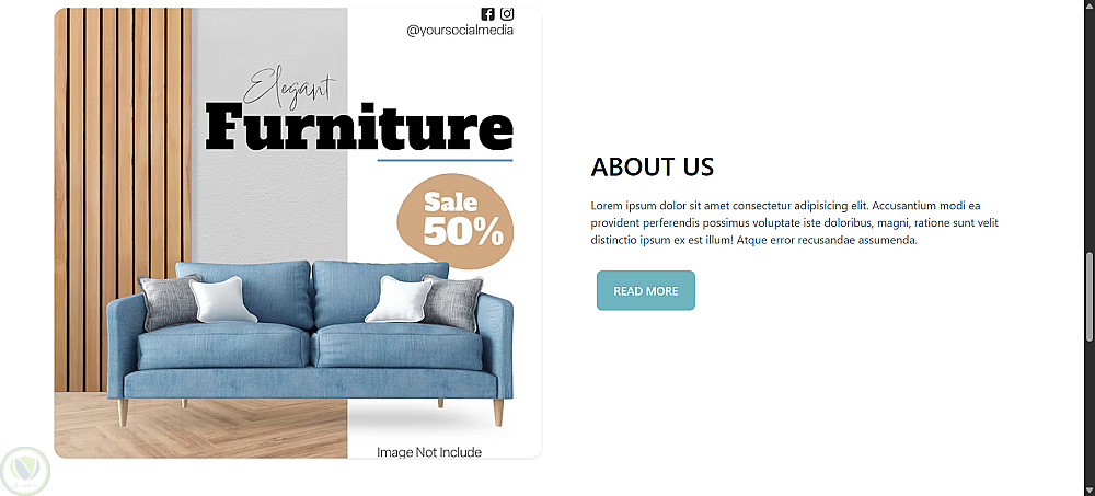 -بنية الموقع: رأس الصفحة يحتوي على شعار وروابط (الروافع: الرئيسية، من نحن، أثاث، مدونة، تواصل)، فرغ مناسبة -يعلن عن “Find What Suits Your Space Personality!”، ومعاينة لغرفة جلوس مميزة كلوحة بصرية رئيسية.