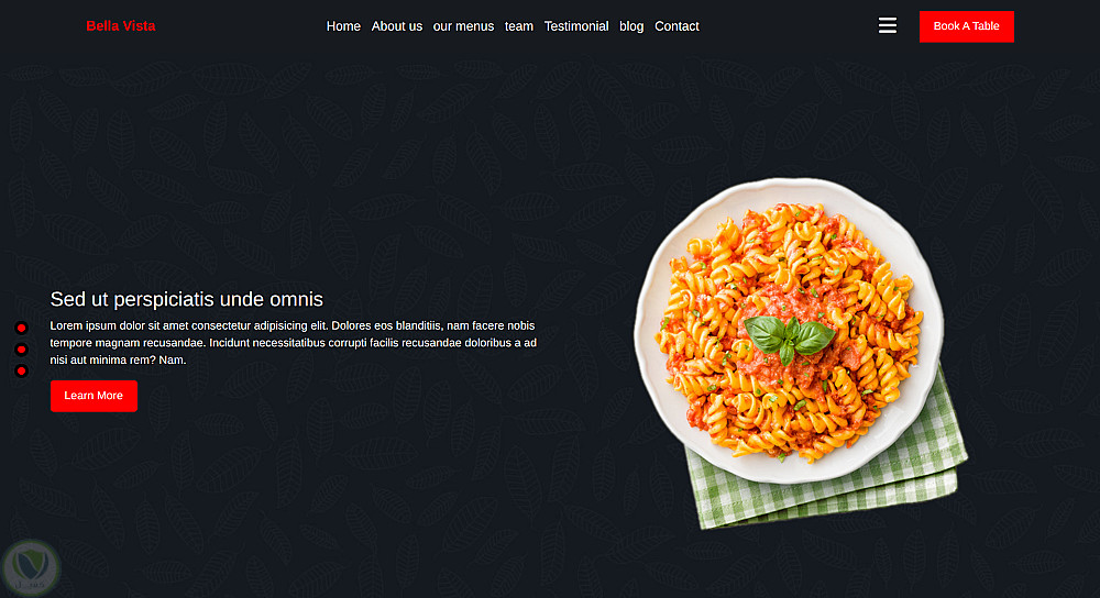 أقسام لعرض مميزات المطعم وصور الأطباق.