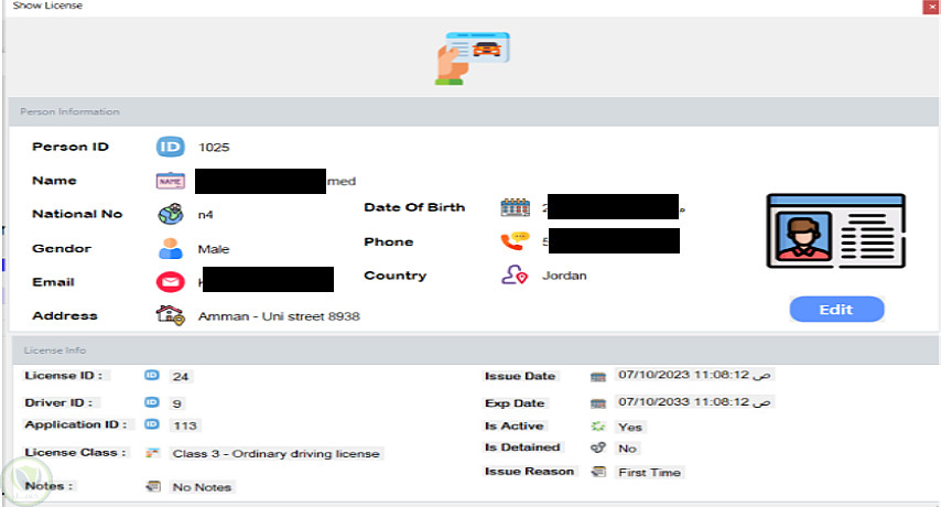 تطبيق سطح مكتب متقدم يوفر حلاً شاملاً لإدارة جميع عمليات رخص القيادة والمركبات. يهدف المشروع إلى تحديث وتطوير العمليات التقليدية لإصدار وتجديد وإدارة رخص القيادة من خلال نظام رقمي متطور يضمن الكفاءة والأمان والامتثال للمعايير الوطنية والدولية.