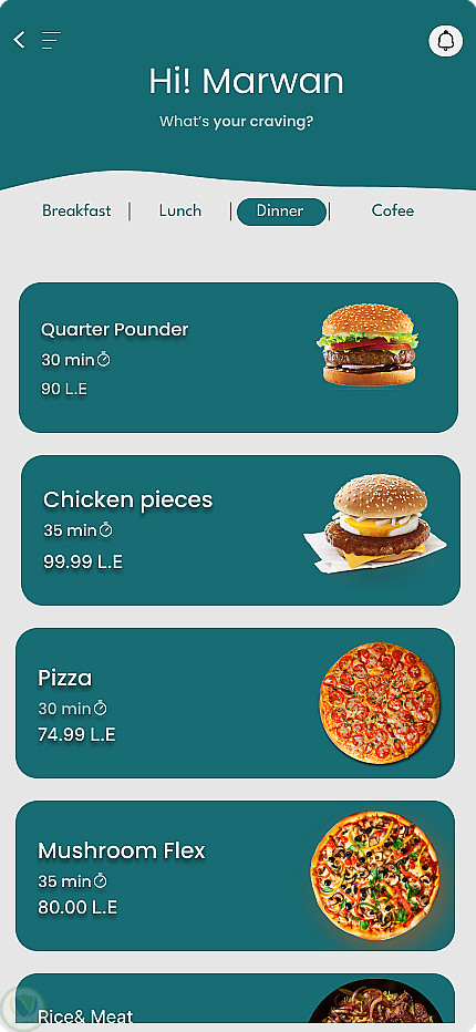 تطبيق "Healthy Food Menu" لعرض وجبات بطريقة عصرية ومنظمة. يضم التطبيق أقسام الإفطار، الغداء، العشاء، والمشروبات، مع عرض الأسعار، الصور، والمكونات. ركزت على توفير تجربة استخدام سهلة وألوان هادئة تعكس الطابع الصحي، مع إضافة قسم للعروض الخاصة لزيادة التفاعل.