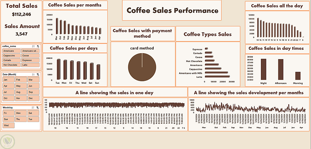 المشكلة: كانت إدارة العمليات في المقهى تفتقر إلى وضوح حول أنماط مبيعات القهوة خلال الأشهر و الأيام والفترات المختلفة خلال اليوم الواحد