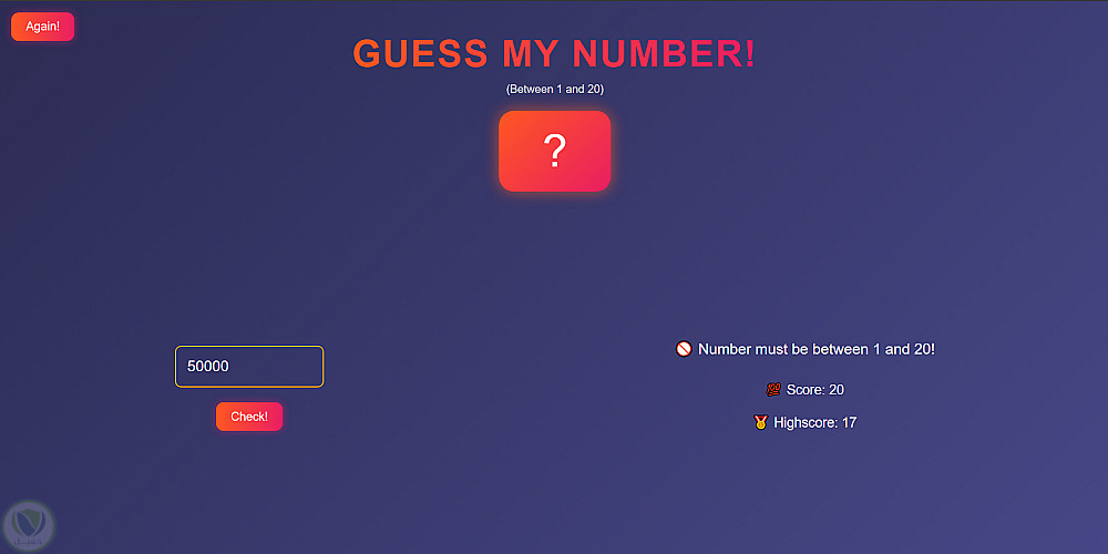 يقوم الحاسوب باختيار رقم عشوائي بين 1 و 20، وعلى اللاعب محاولة تخمين هذا الرقم.