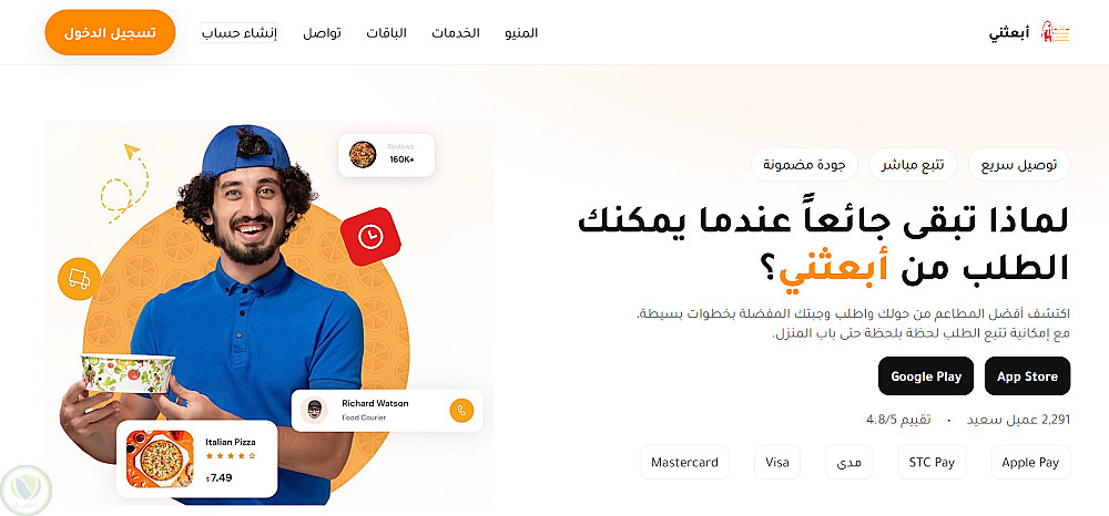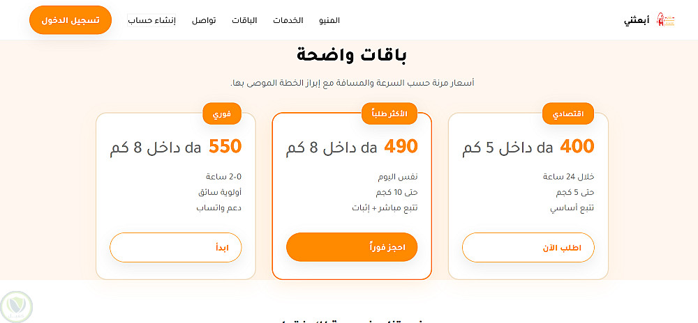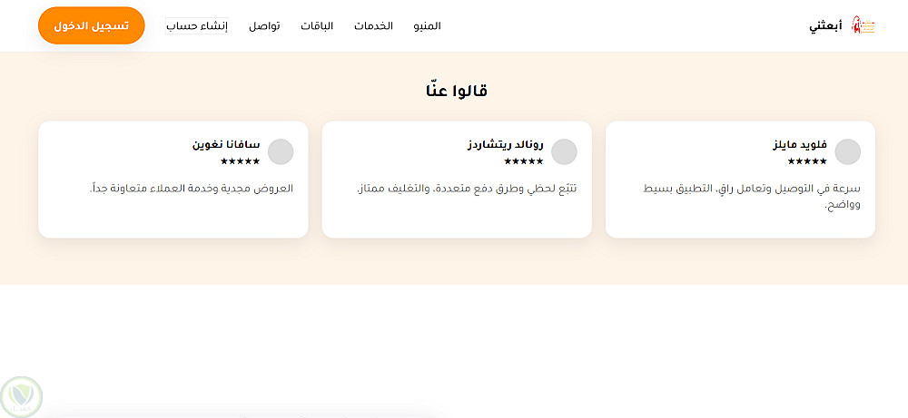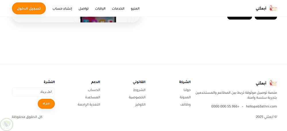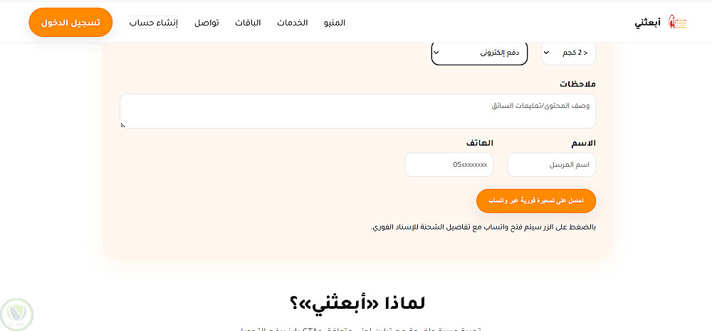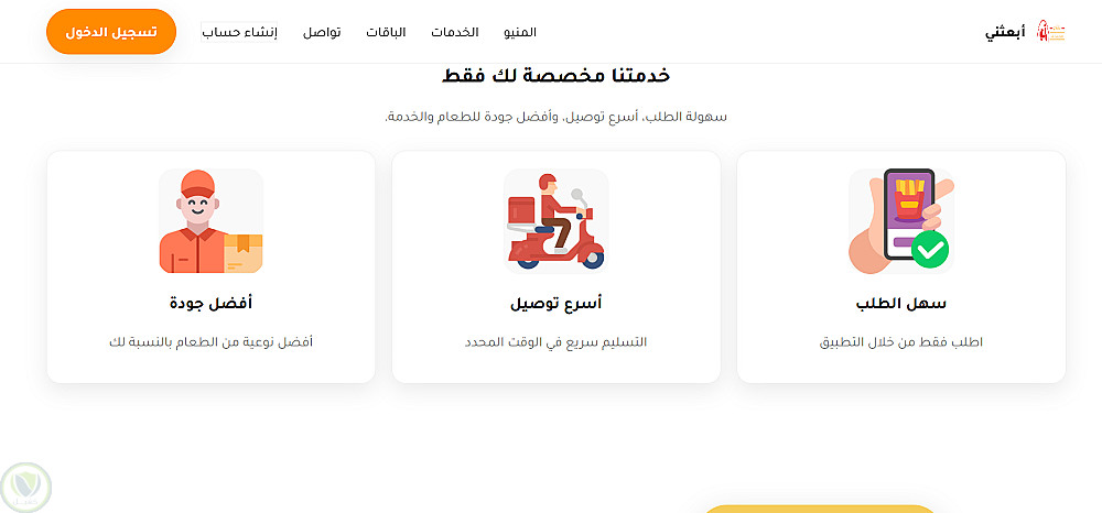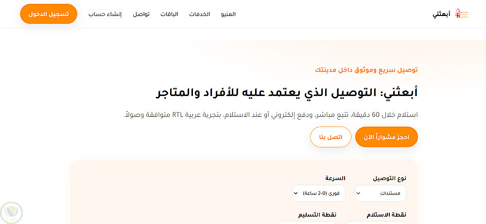تطوير Landing Page احترافية لمنصة توصيل الطلبيات "ابعثني"
