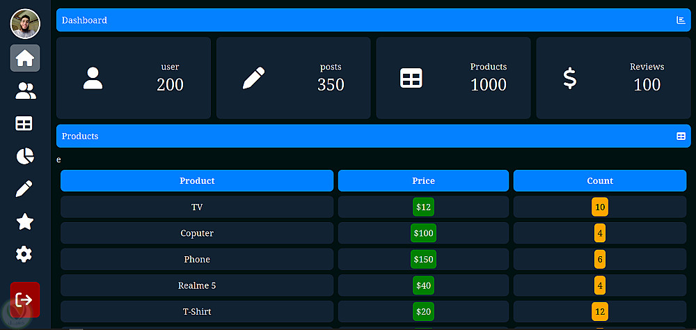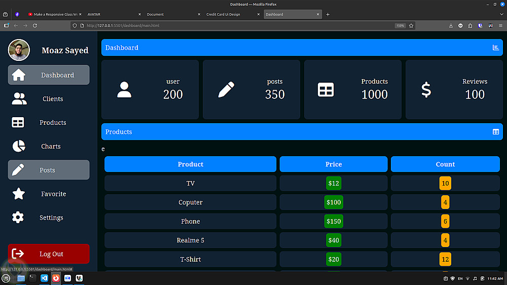 قمت بتصميم وتطوير لوحة تحكم (Dashboard) متجاوبة لإدارة المنتجات والمستخدمين.