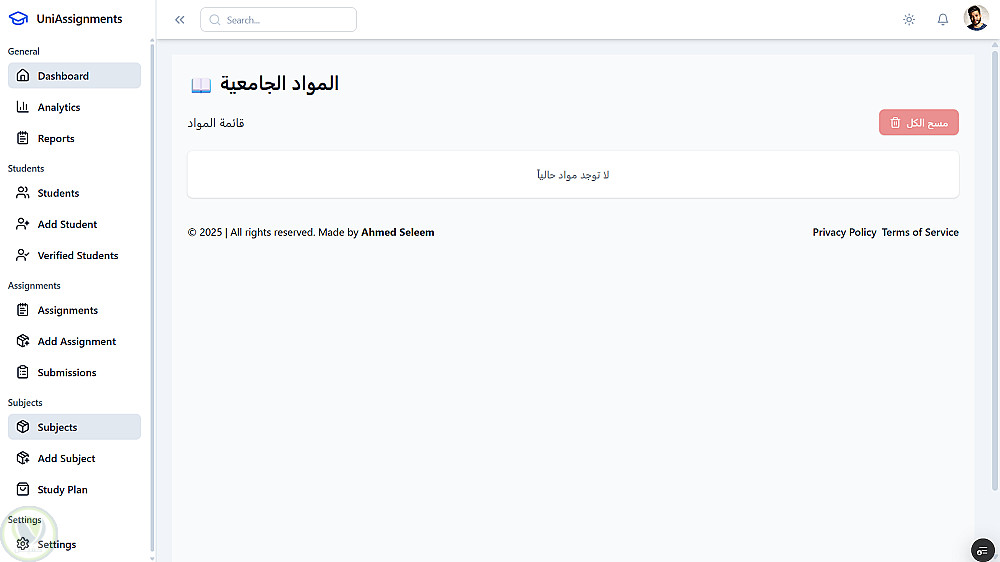 نظام إدارة الجامعة (University Management System) منصة متكاملة لإدارة الطلاب، الكورسات، الدرجات، وجد
