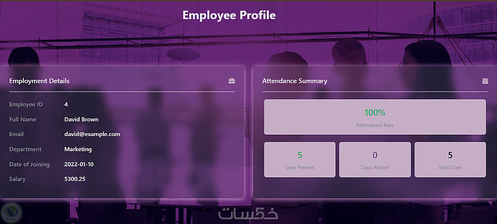 نظام إدارة الموظفين (Employee Management System): تطبيق ويب متكامل لإدارة بيانات الموظفين والحضور مع صلاحيات مختلفة للمستخدمين.
