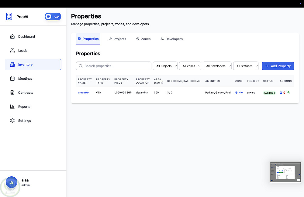 نظام متكامل لإدارة العملاء والمشاريع العقارية وتنظيم عمل الفريق.