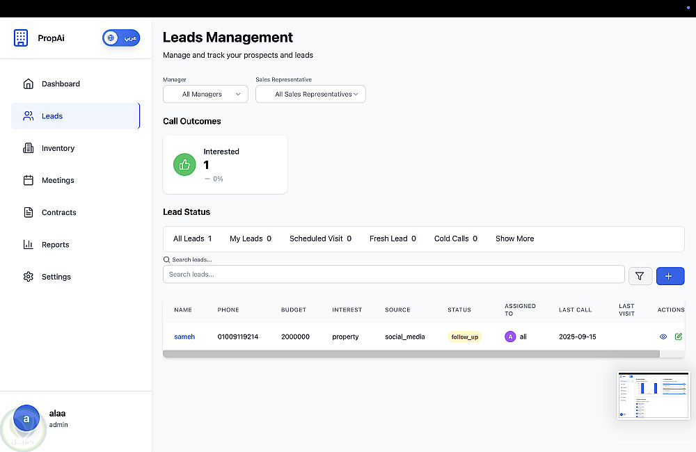 متابعة العملاء المحتملين وتحويلهم لعملاء فعليين.