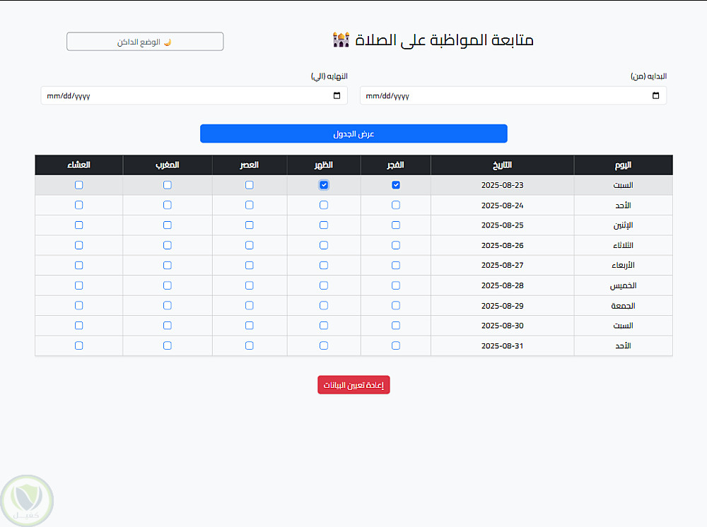 قمت بتطوير تطبيق ويب لمتابعة أداء الصلوات اليومية بطريقة سهلة وبسيطة.