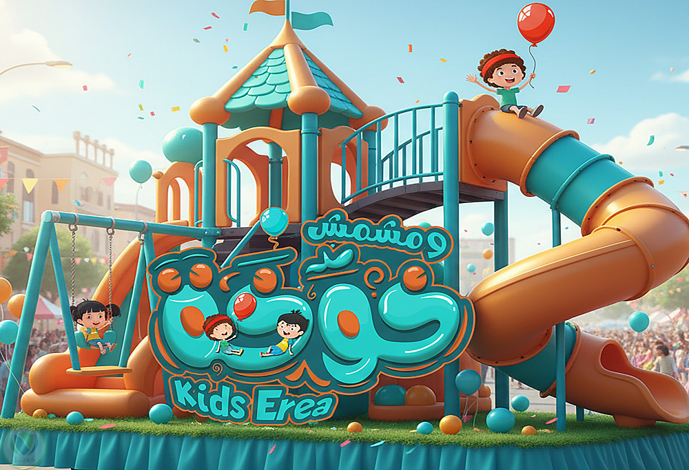 تم تنفيذ الشعار بأسلوب كرتوني مرح يعكس أجواء الفرح والمرح، حيث يدمج بين الخط العربي العصري وكلمات إنجليزية لإضفاء هوية بصرية مميزة تجمع بين الأصالة والحداثة.