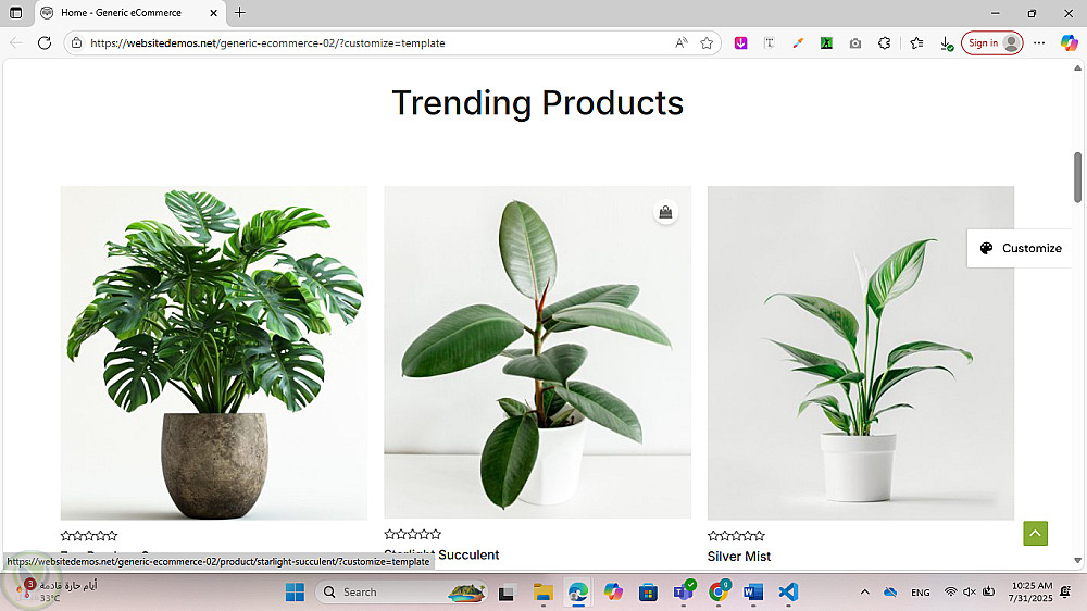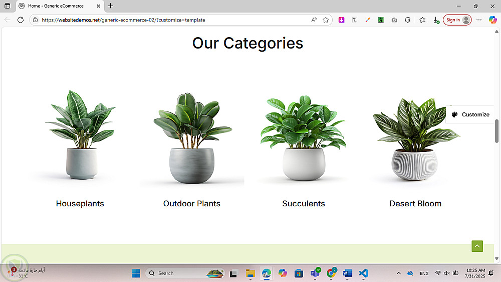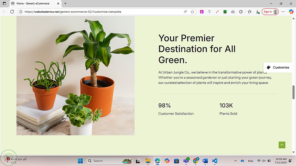 قمتُ بتصميم وتطوير واجهة متجر إلكتروني عصري ومتجاوب مخصّص لبيع النباتات المنزلية، مع تركيز خاص على الجاذبية البصرية وسهولة التصفح.