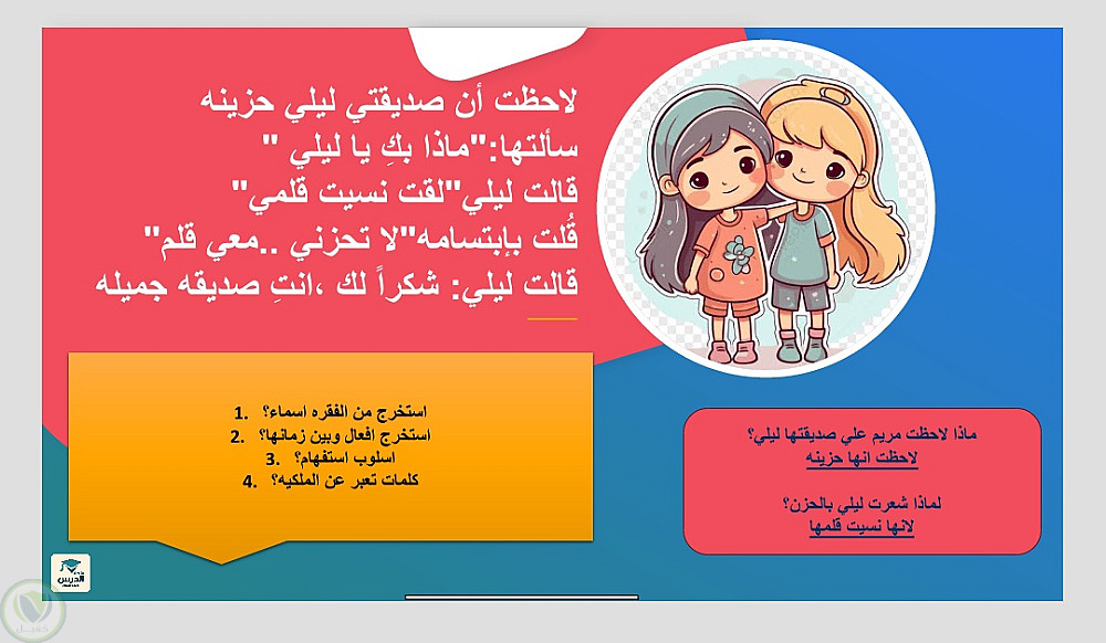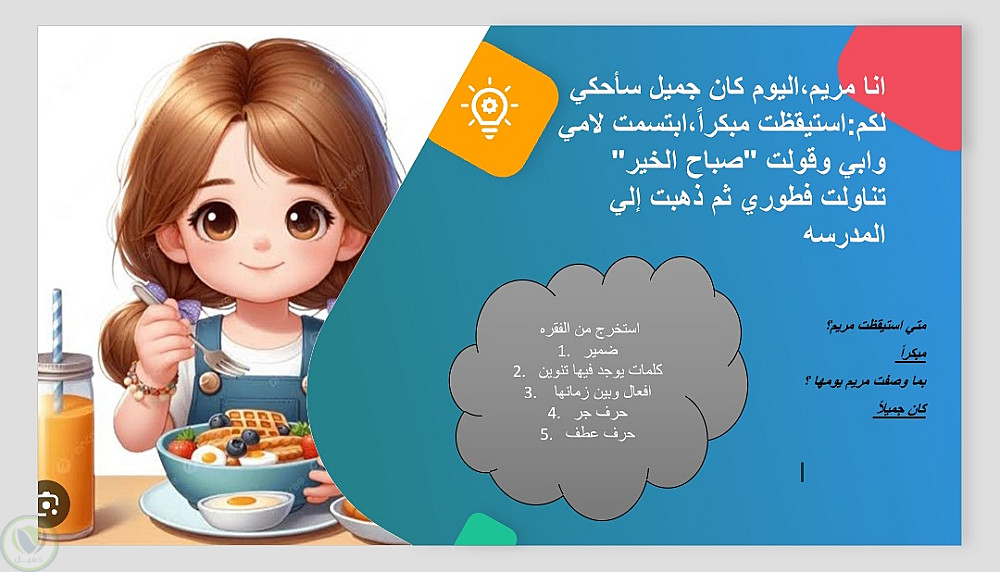 يتضمن الشرح عرض بوربوينت من تصميمي لدرس اللغة العربية للصف الثالث الابتدائي، بأسلوب بسيط وممتع يناسب الأطفال، مع أمثلة وتدريبات تساعد على ترسيخ الفهم.