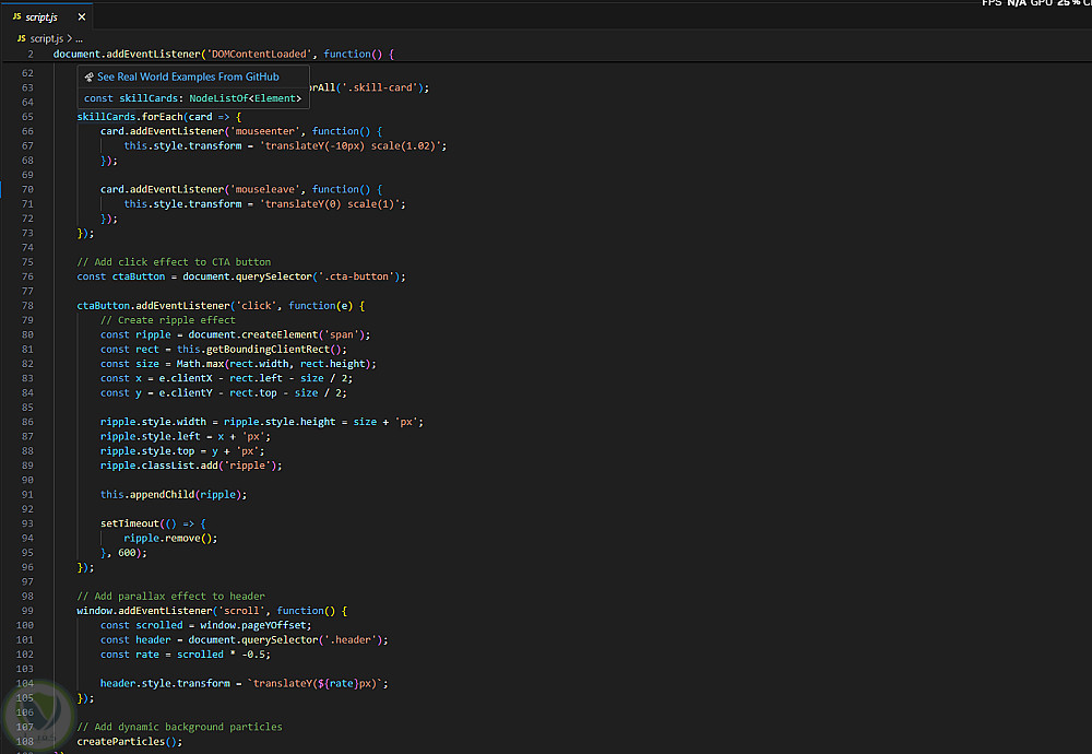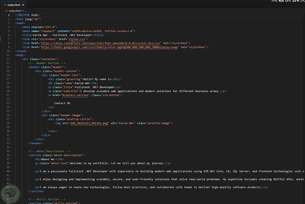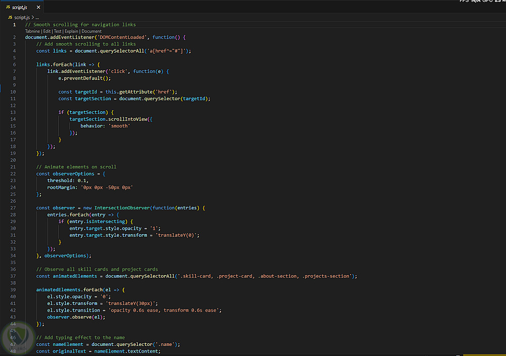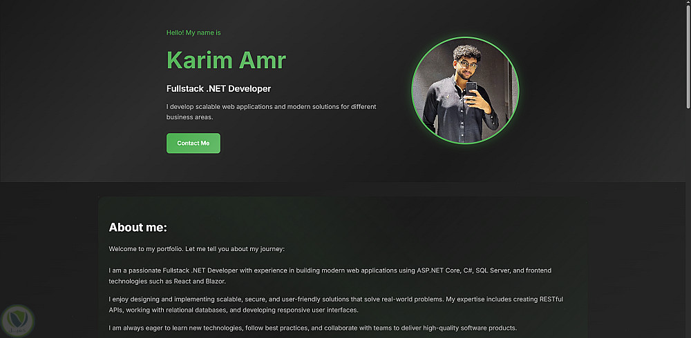 هذا الموقع هو بورتفوليو شخصي قمت بتطويره باستخدام HTML وCSS وJavaScript. يهدف الموقع إلى عرض نبذة عني، مهاراتي، وخبراتي بشكل احترافي، بالإضافة إلى استعراض بعض من أعمالي ومشاريعي السابقة. حرصت على أن يكون التصميم بسيط وسهل التصفح، مع أقسام واضحة مثل "عنّي"، "الأعمال"، و"التواصل". الموقع قابل للتخصيص والتطوير ليتناسب مع أي مجال عمل أو تخصص.