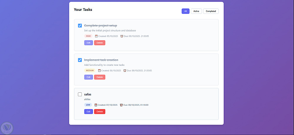 المشروع مناسب كجزء من نظام متكامل لإدارة المهام أو كنموذج لتطبيقات CRUD تفاعلية في الويب.