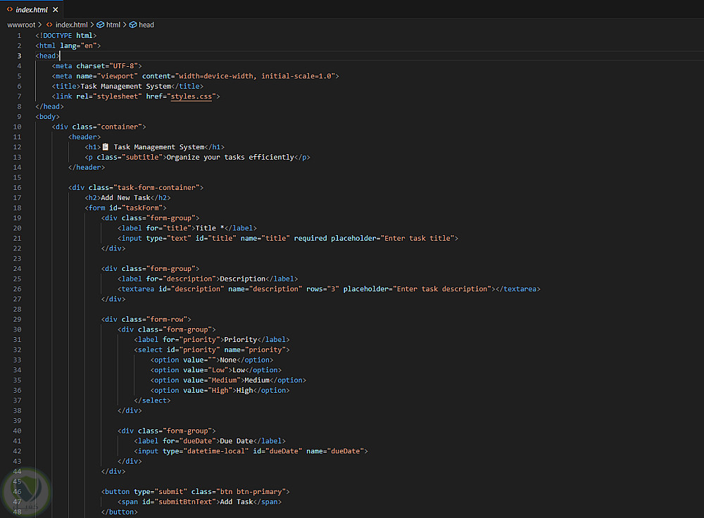 مشروع واجهة نظام إدارة مهام (Task Management System Front-End) هو تطبيق ويب تفاعلي تم تطويره باستخدام HTML وCSS وJavaScript لتمكين المستخدمين من إدارة مهامهم اليومية بسهولة.