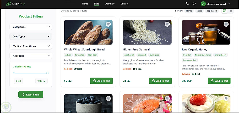 متجر الكتروني لبيع المنتجات الغذائية تفاصيل العمل