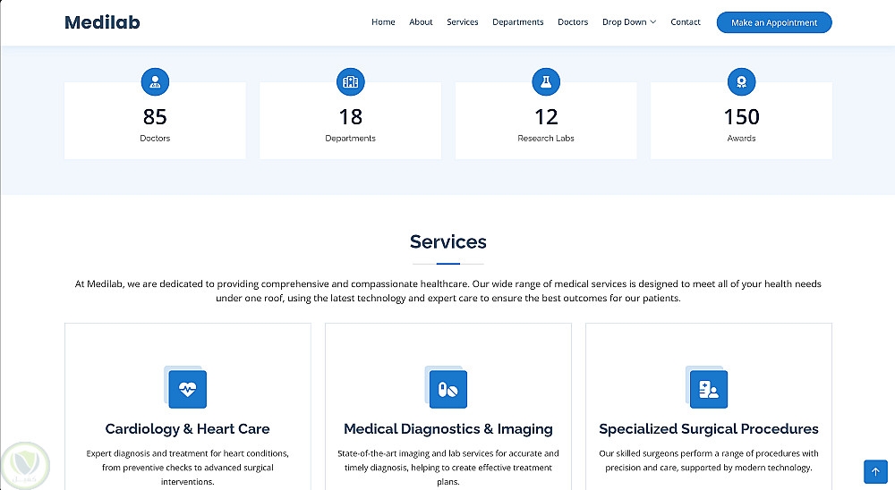 تطوير موقع ويب طبي متكامل لـ ميديلاب