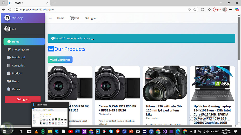 طوّرتُ نظام إدارة متجر إلكتروني متكامل باستخدام ASP.NET MVC وjQuery لدعم كلٍّ من دور المدير والمستخدم (العميل).