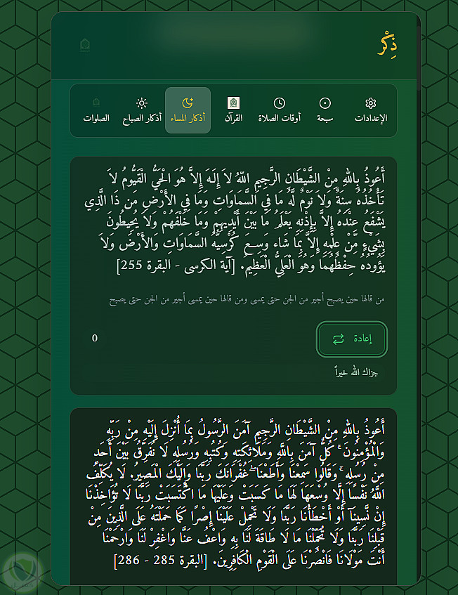 التطبيق يتميز بتصميم أنيق وسرعة في الأداء، لمساعدة المستخدم على البقاء قريبًا من الله في يومه