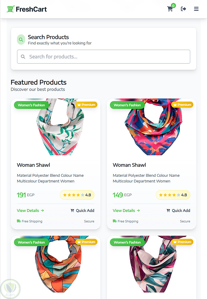 مشروع E-Commerce هو متجر إلكتروني تم تطويره باستخدام React + Vite، مع واجهة أنيقة باستخدام Tailwind CSS. الهدف من المشروع هو عرض المنتجات بطريقة جذابة وسريعة مع تجربة مستخدم ممتازة.