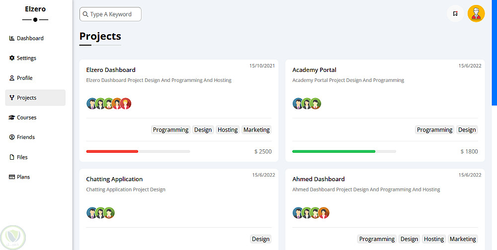 داش بورد باستخدام HTML CSS