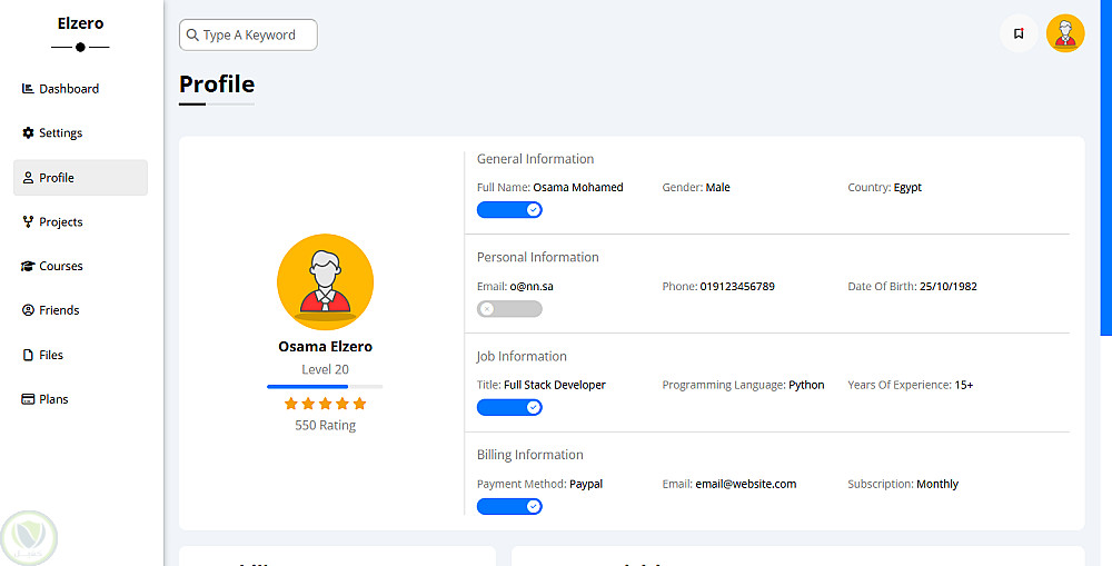 ركّزت في المشروع على تنسيق الواجهة بطريقة منظمة وسهلة الاستخدام، مع توزيع العناصر بشكل واضح زي الشريط الجانبي (Sidebar)، الرأس (Header)، والجداول (Tables) وبطاقات الإحصائيات (Cards).