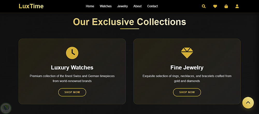 قمت بتطوير موقع إلكتروني احترافي مخصص لعرض وبيع المنتجات الفاخرة مثل المجوهرات الذهبية والساعات عالية الجودة.