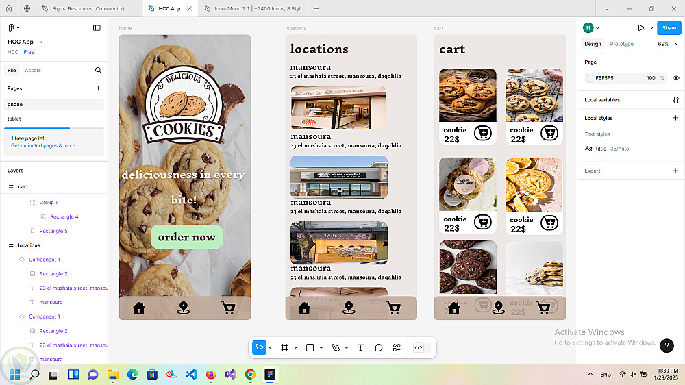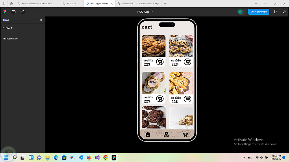 تصميم واجهة تطبيق متجر متخصص في بيع الكوكيز والحلويات الطازجة، يهدف إلى تقديم تجربة مستخدم مريحة وجذابة تسهّل على العميل تصفّح المنتجات وطلبها بسهولة.