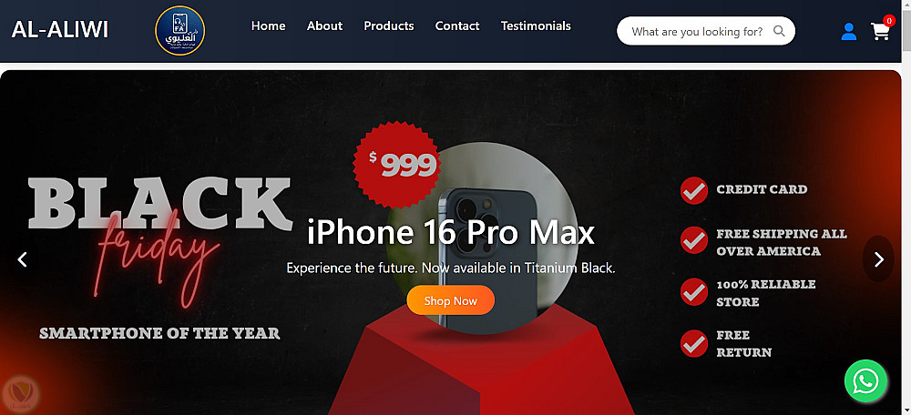 تم تطوير متجر إلكتروني احترافي AL-ALIWI STORE لبيع الهواتف الذكية والإكسسوارات، بهدف توفير تجربة تسوق عصرية وسهلة للمستخدمين.
