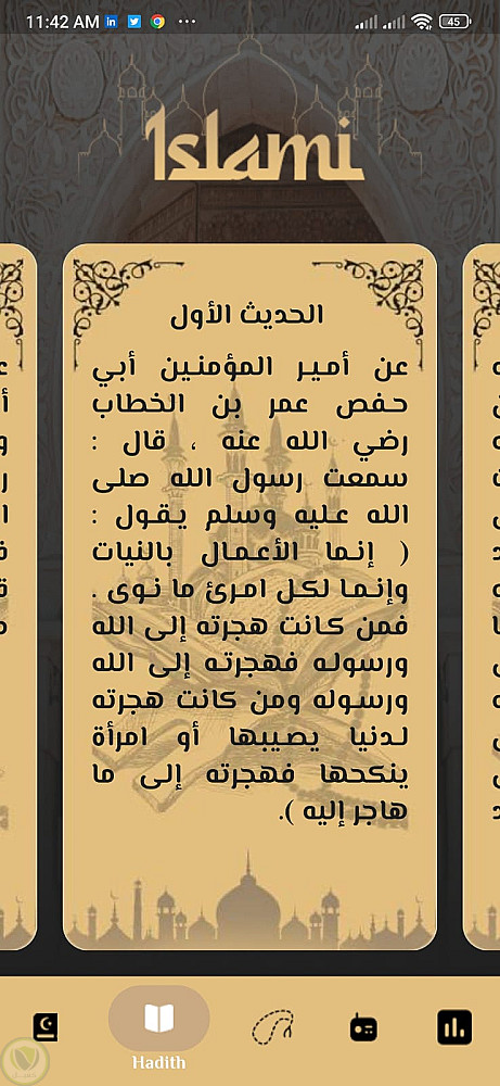 تطبيق "Islami" هو تطبيق إسلامي شامل يوفر للمستخدمين مجموعة من الميزات الدينية المهمة، ويتميز بتصميم بسيط وسهل الاستخدام. يحتوي التطبيق على4 تابات ، كل منها تقدم مجموعة من الوظائف المفيدة للمستخدم.