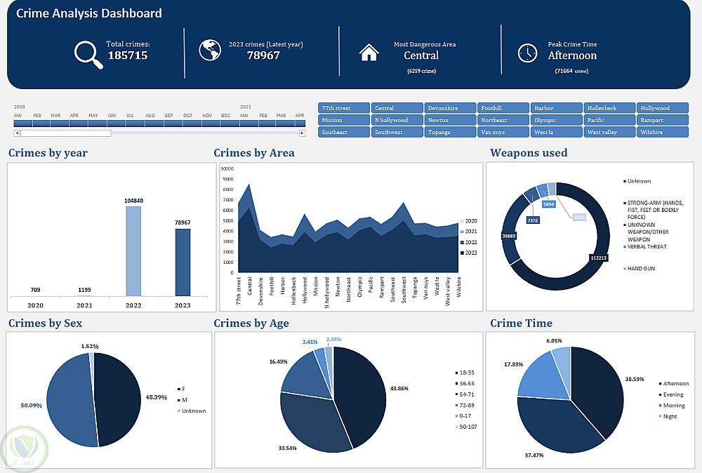 المشروع كان تحليل بيانات الجرائم في لوس أنجلوس للفترة من 2020 إلى 2023.