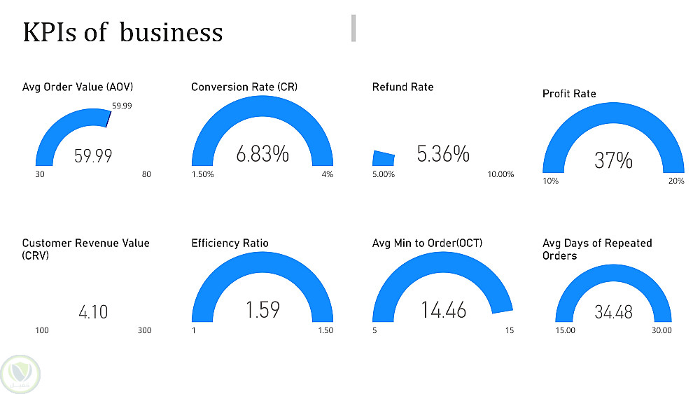 تتضمن اللوحة تحليلاً لتجربة العملاء، وتوزيع الزيارات حسب الأجهزة ومصادر الوصول، بالإضافة إلى تتبع أداء الأرباح والعملاء المتكررين.
