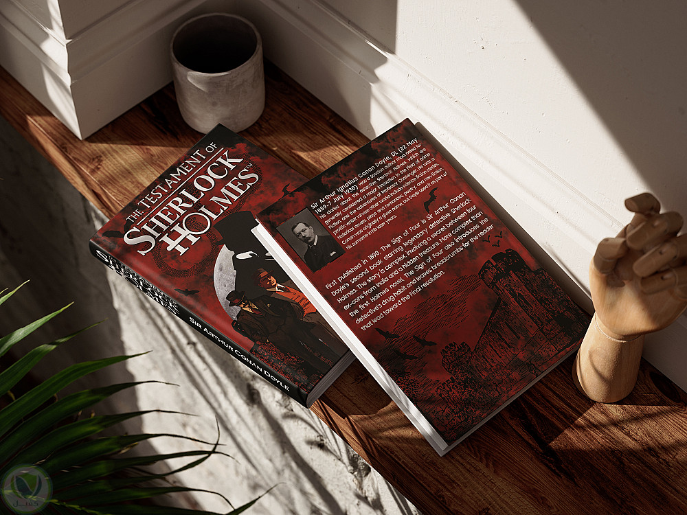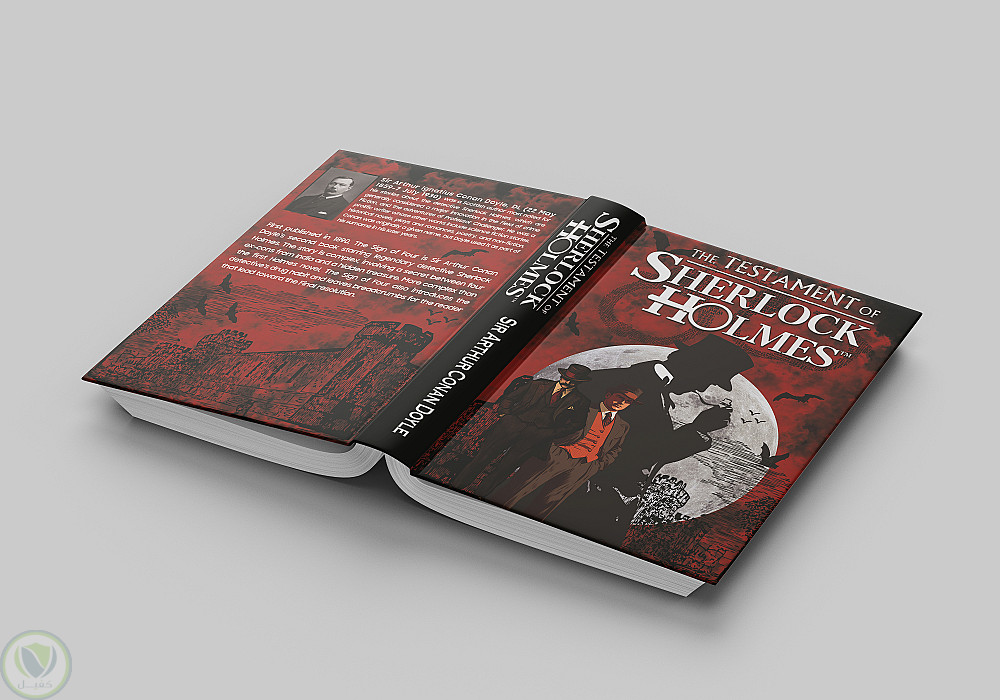 تصميم غلاف معجبين لسلسلة شيرلوك هولمز — بألوان الأحمر والأسود لإبراز أجواء دموية ومخيفة تليق بالسلسلة البوليسية في اجواء القلعة القديمة.