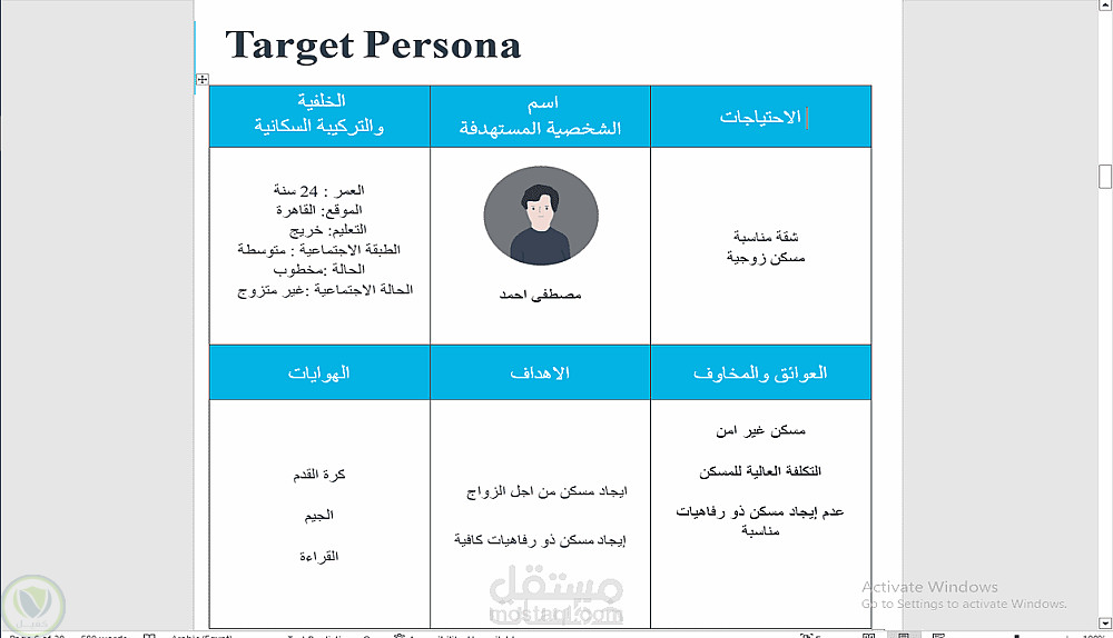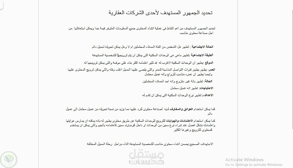 يحتوى هذا العمل على طرق استهداف الجمهور (Target persona +Customer Journey) ومراجعة للمحتوى الذى تم انشاءه