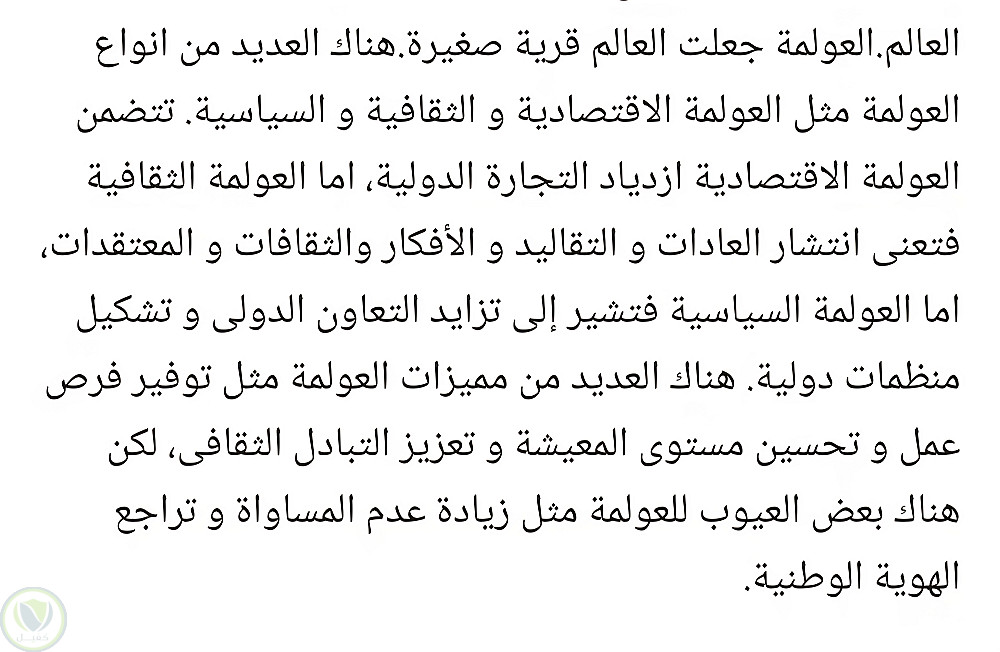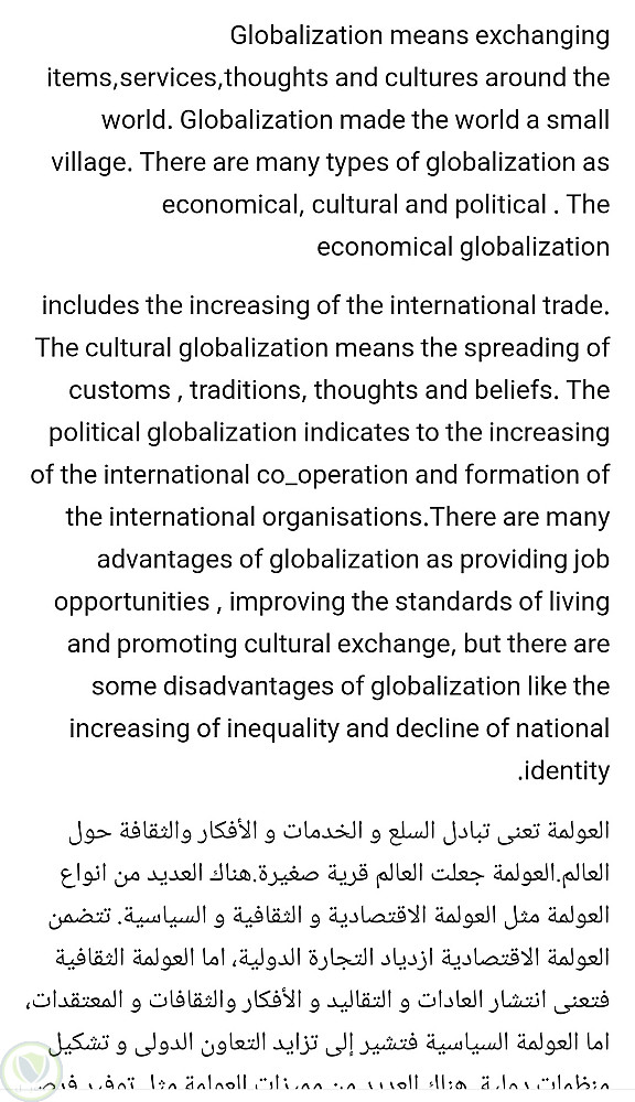محتوى عن العولمة بالإنجليزية و ترجمته الى العربية