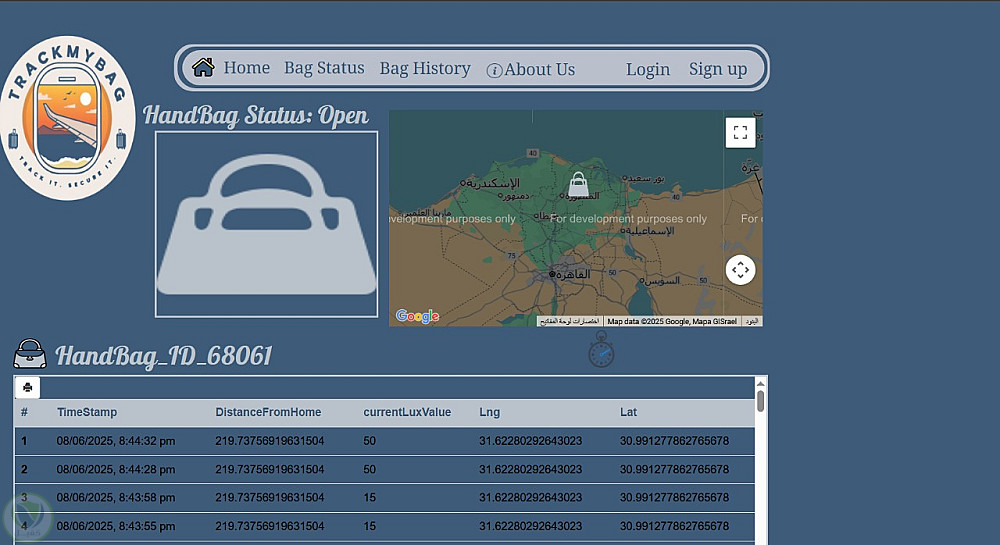 طوّرتُ تطبيق لمراقبة الحقيبة (Bag Monitoring Application) كجزء من برنامج تدريبي في إنترنت الأشياء (IoT).