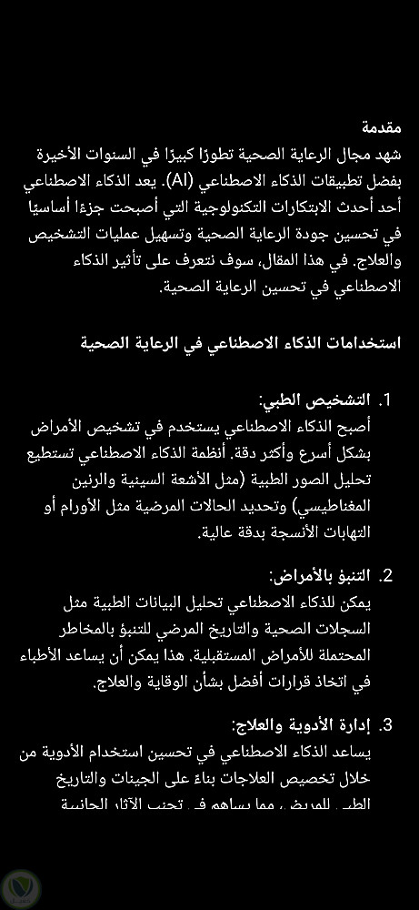 المقال يعرض فكرة مختصرة ومبسطه عن تأثير الذكاء الاصطناعي في قطاع الرعاية الصحية