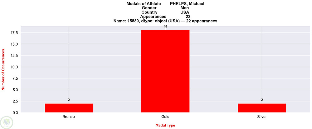 عرض النتائج في رسوم بيانية تفاعلية توضّح تكرار الميداليات، عدد اللاعبين، والفروق الزمنية بين الألعاب.