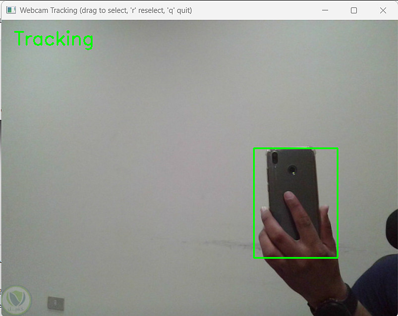 يتيح التطبيق للمستخدم رسم مستطيل ROI بالسحب بالماوس لبدء التتبّع فورًا، مع دعم خوارزميتي CSRT وKCF تلقائيًا حسب المتاح في تثبيت OpenCV.