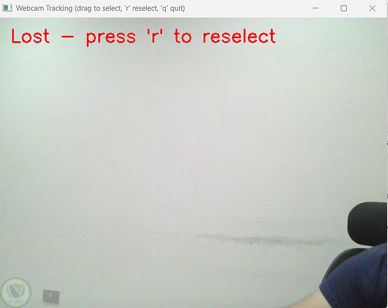 تطبيق تتبّع كائنات من كاميرا الويب باستخدام Python وOpenCV (CSRT/KCF) مع تحديد ROI بالسحب