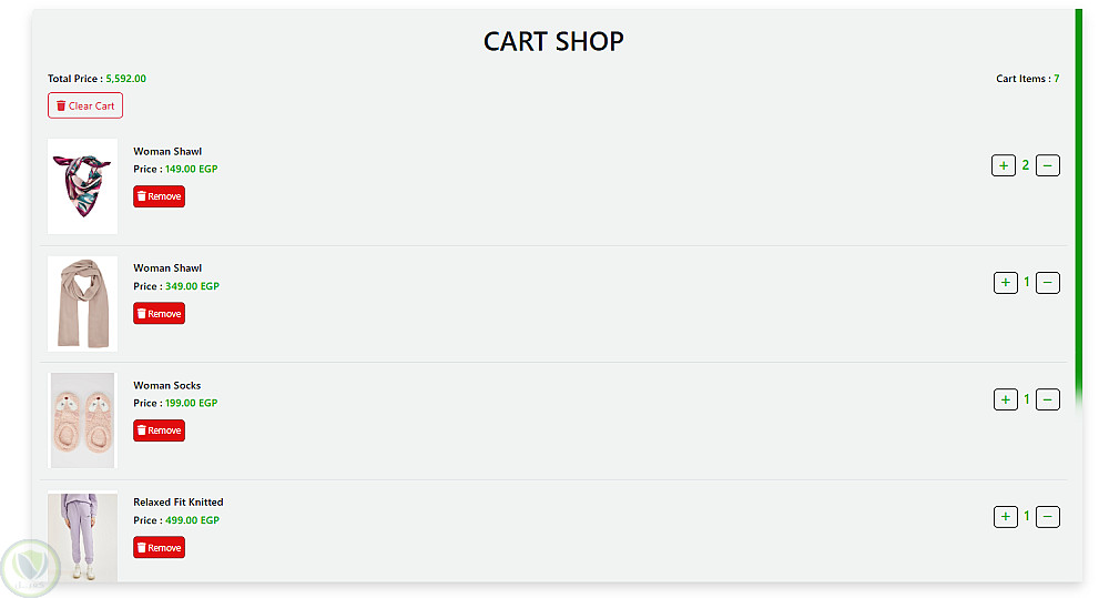 - نظام سلة التسوق (Shopping Cart) مع إضافة وحذف المنتجات