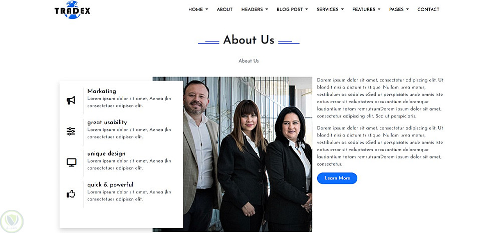 - صفحات متعددة (الرئيسية، من نحن، الخدمات، اتصل بنا، إلخ)