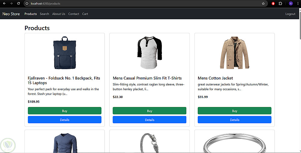 Neo Store هو تطبيق ويب حديث تم تطويره باستخدام Angular يهدف إلى توفير تجربة تسوق إلكتروني متكاملة للملابس ومنتجات الموضة. يتميز التطبيق بواجهة استخدام أنيقة وسريعة الاستجابة، مع إمكانية تصفح المنتجات حسب الفئات، عرض تفاصيل كل منتج، وإدارة عربة التسوق بسهولة. كما يتضمن نظام تسجيل دخول وتسجيل حساب آمن باستخدام JWT Authentication لتمكين المستخدمين من حفظ بياناتهم وتتبع طلباتهم.