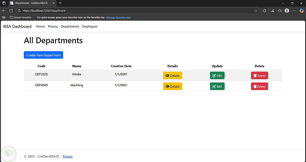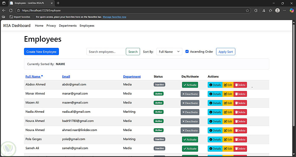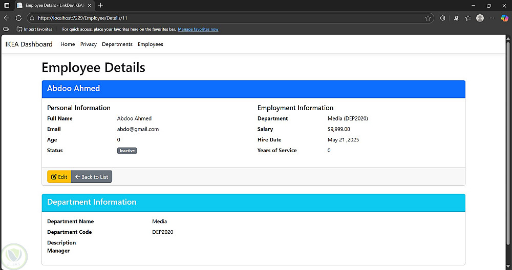 نظام إدارة الموظفين والأقسام باستخدام ASP.NET MVC