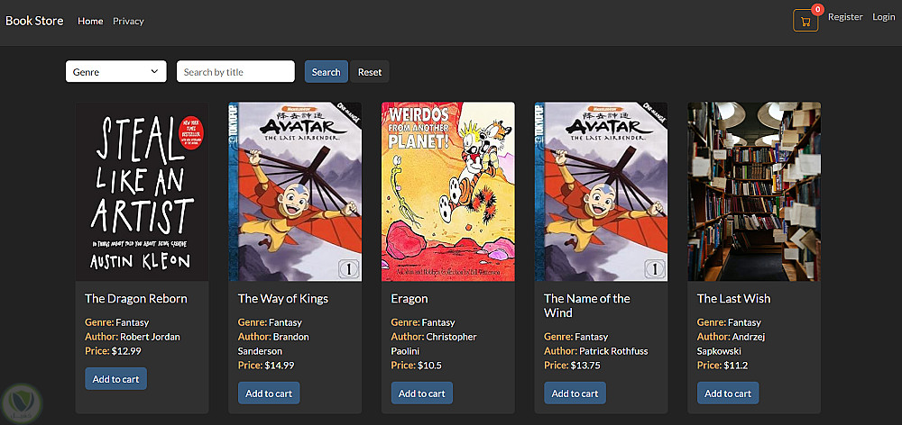 مشروع متجر إلكتروني لبيع الكتب يتيح للمستخدمين تصفح الكتب حسب التصنيفات، مشاهدة تفاصيل كل كتاب مثل المؤلف والسعر والوصف، وإضافتها إلى سلة المشتريات. كما يتيح تسجيل الدخول وإنشاء حساب للمستخدمين لإتمام عملية الشراء.
