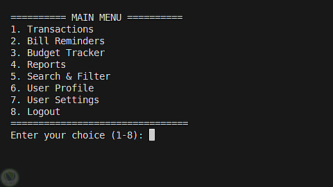 قمت بتطوير تطبيق متكامل لإدارة الشؤون المالية الشخصية باستخدام لغة Python، وهو تطبيق يعتمد على الواجهة النصية (Console-based Application).